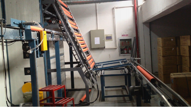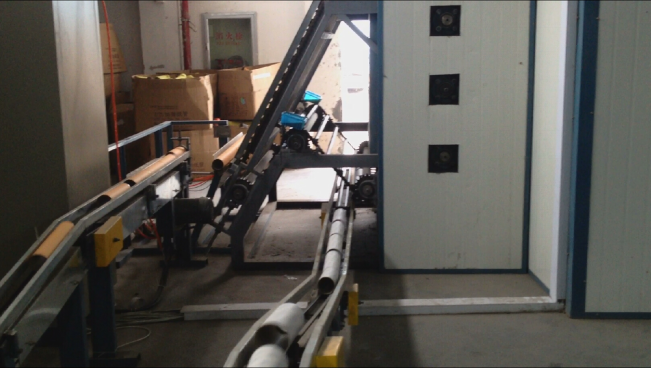 2、流水线烘房由纸管机卷管后的纸管通过输送带自动进入预烘区,经过预烘后增强了纸张的黏合,去除部分水分使纸管有一定的强度,便于纸管卷边(弯边)时不变形不开裂,自动输送、进烘厢、出烘厢,进后段加工,除湿、烘干、温度检测、故障检测、报警提示等全自动化,无须人员看管。纸管缓缓滚动、逐步烘干,高强热风正反向循环从纸管内外腔流动,合适均匀的温度控制, 避免了老式烘房纸管由于固定成堆的放置,风力、温度分布不均造成的尺寸变形,水份不匀等缺陷。